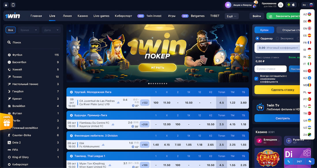 На официальном зеркале онлайн-сервиса посетители смогут делать ставки на спортивные Live-матчи, играть в покер прямо сейчас в казино и прочие игры, представленные в БК 1 ВИН.